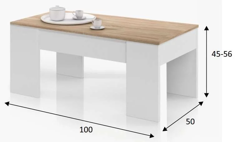 – Mesa centro con tapa elevable. Con espacio de almacenamiento que queda oculto al cerrar la tapa.