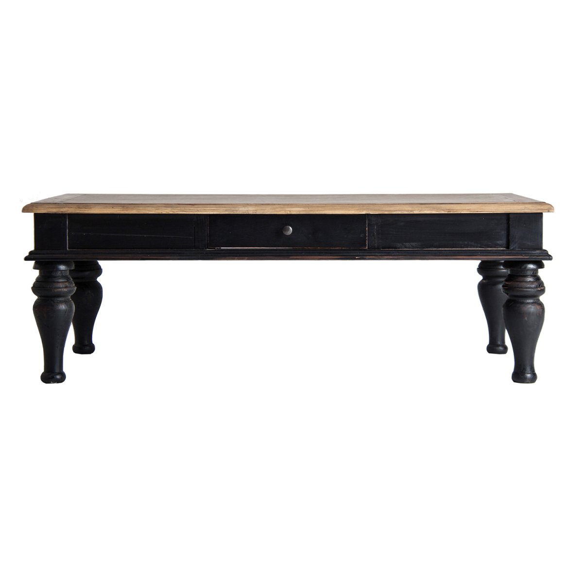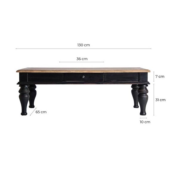Mesa de centro zenica, en color negro/natural, de estilo provenzal. Fabricado en madera de pino reciclado. VicalHome.