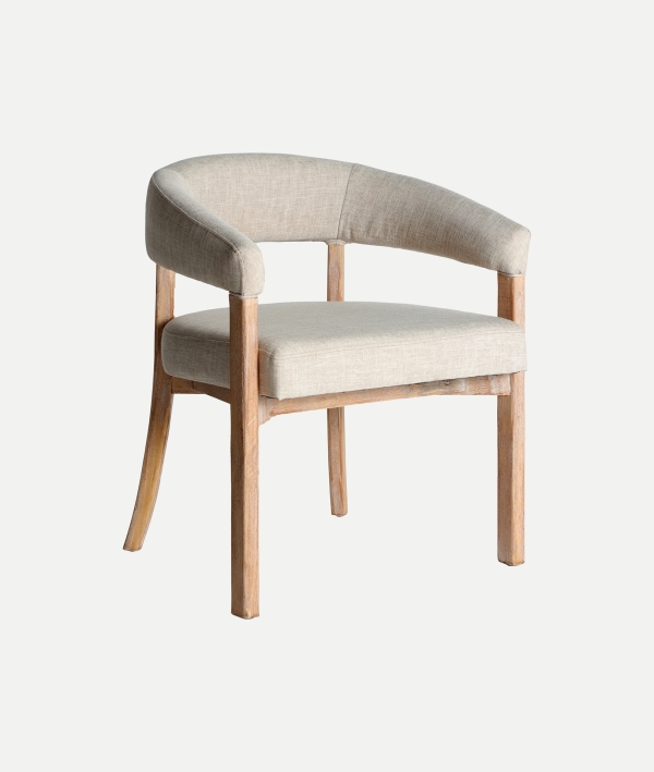 La Silla Kai de KODU reinterpreta la comodidad desde una estética contemporánea equilibrada y atemporal. Su estructura en madera de olmo en tono marrón claro aporta calidez visual y una base sólida, mientras que el tapizado en lino beige introduce suavidad y textura natural.