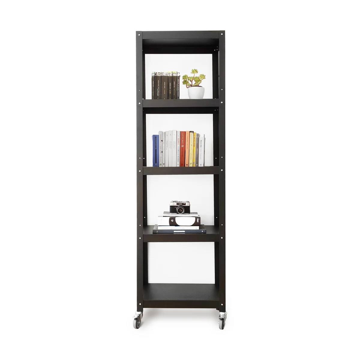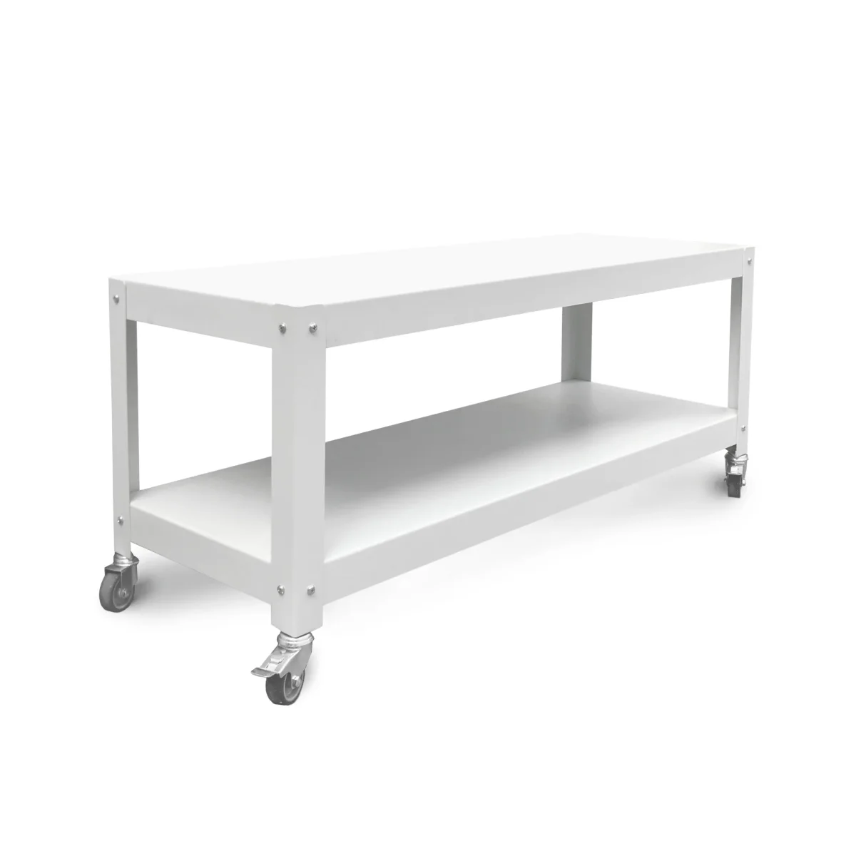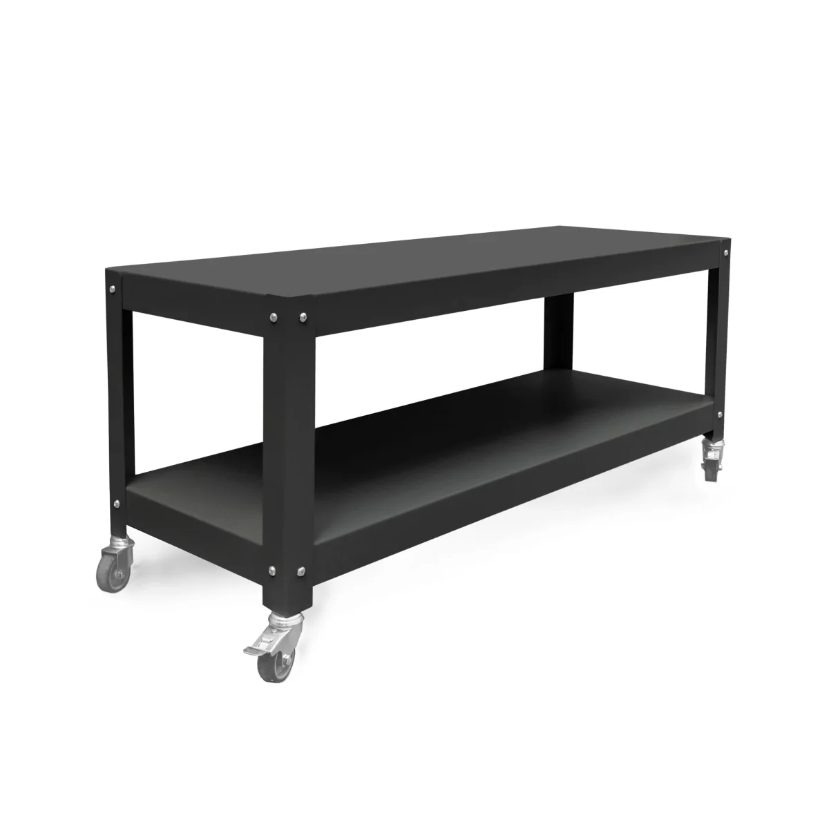 Composición funcional: Dos estanterías de 55×35 para libros, objetos deco o equipos, combinadas con una mesa ratona ideal para TV y apoyo diario.